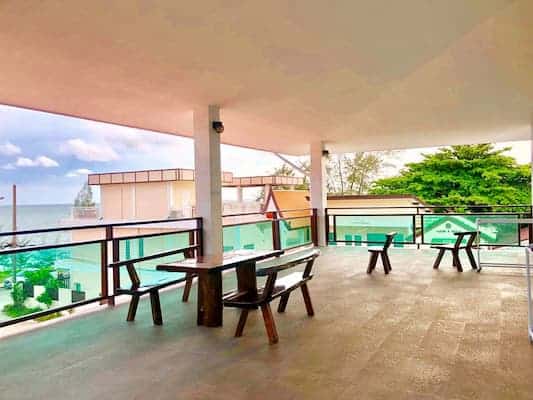 ก็สามารถเดินข้ามจากที่พักไปนั่งชิวๆ ที่ริมทะเลได้เลย ฝั่งชายหาดก็จะมีของขายเยอะมาก จะนั่งร้านหรือเอาเก้าอี้สนาม