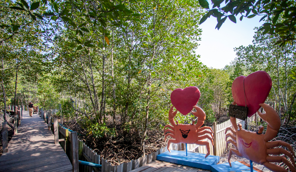 ประมาณจากจังหวัดระยองเพื่อก่อสร้าง สะพานรักษ์แสม สะพานไม้ที่เปิดให้นักท่องเที่ยวได้มาเที่ยวชม