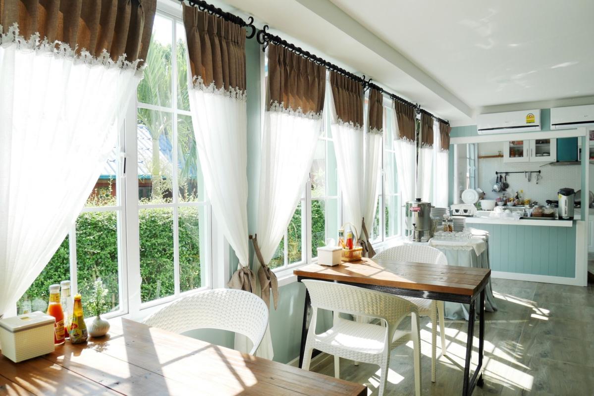 ตู้เย็น กาน้ำร้อน และยังมีบริการอาหารเช้าแบบบุฟเฟต์ให้กินกันแบบจุกๆ มีลานระเบียงสวยๆ ไว้ให้เก็บภาพ