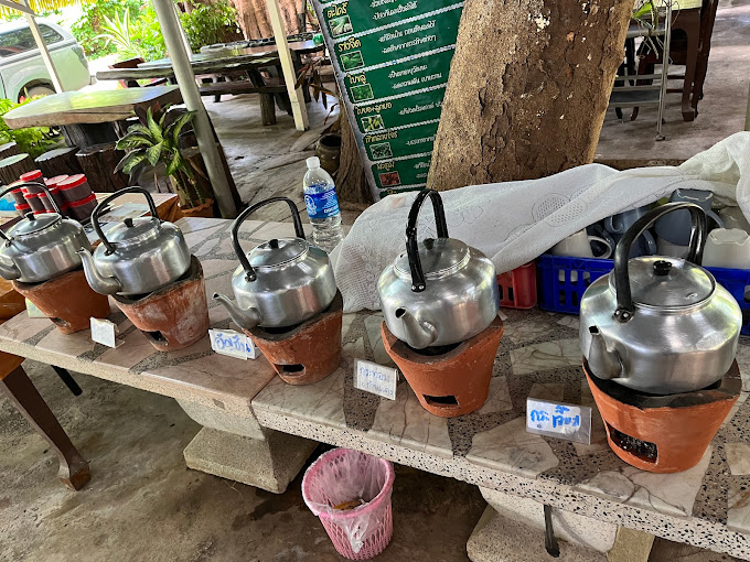 หรือวัตถุดิบที่หาง่ายหาได้ในท้องที่ จะมีต้นกระบกต้นสูงใหญ่อายุมากกว่าร้อยปีตั้งตระหง่านหน้าร้านเลยค่ะ