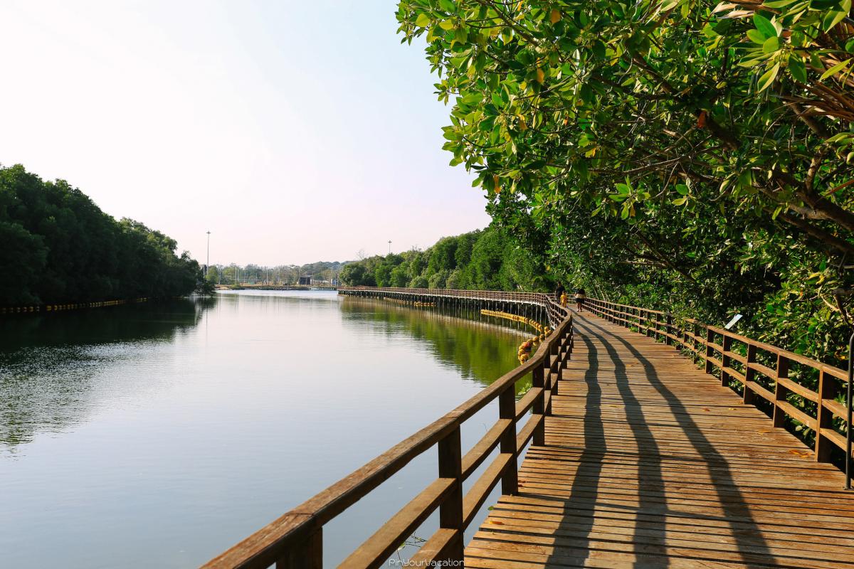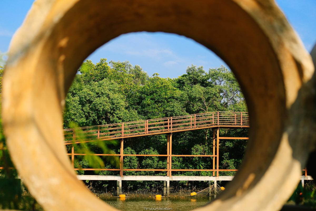 จากนั้นเลี้ยวขวาตรงถนนสมุทรคงคา แล้วจะผ่านวัดปากน้ำไปสุดถนนก็จะเจอกับพระเจดีย์กลางน้ำค่ะ