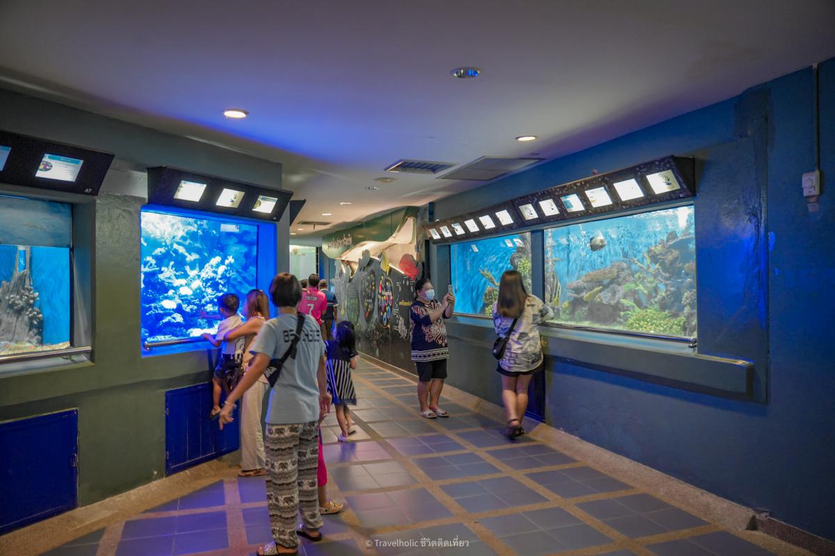 หรือ ปลิงทะเลต่างๆ บ่อจัดแสดงพันธุ์ปลาผิวน้ำ หรือ บ่อกลางแจ้งสำหรับแสดงระบบนิเวศน์ใต้ท้องทะเล