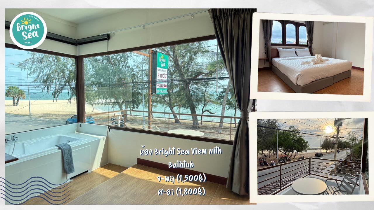- ห้อง Bright Sea View With Bathtub ไบร์ทซีพร้อมอ่าง (เตียง 6 ฟุต) ราคา 1,500 บ./คืน **มองเห็นวิวทะเล**