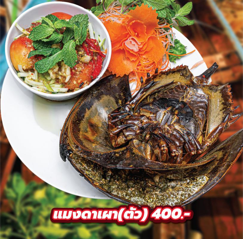 ข้าวขยำปู ข้าวกระเพรามหาสมุทร ปลาหมึกผัดน้ำดำ เอ็นหอยจอบซาชิมิ แกงส้มชะอมกุ้ง+ไข่ปลา