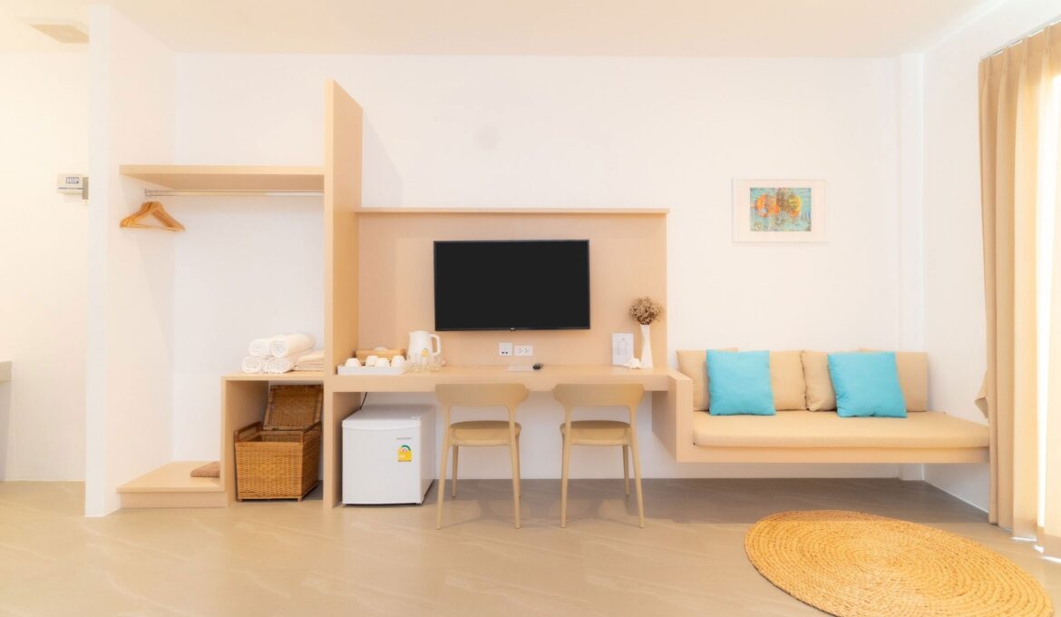 ห้องพักมีระเบียงเชื่อมต่อกับสระว่ายน้ำส่วนกลางแบบ Pool Access ได้ทันที เหมาะกับ
