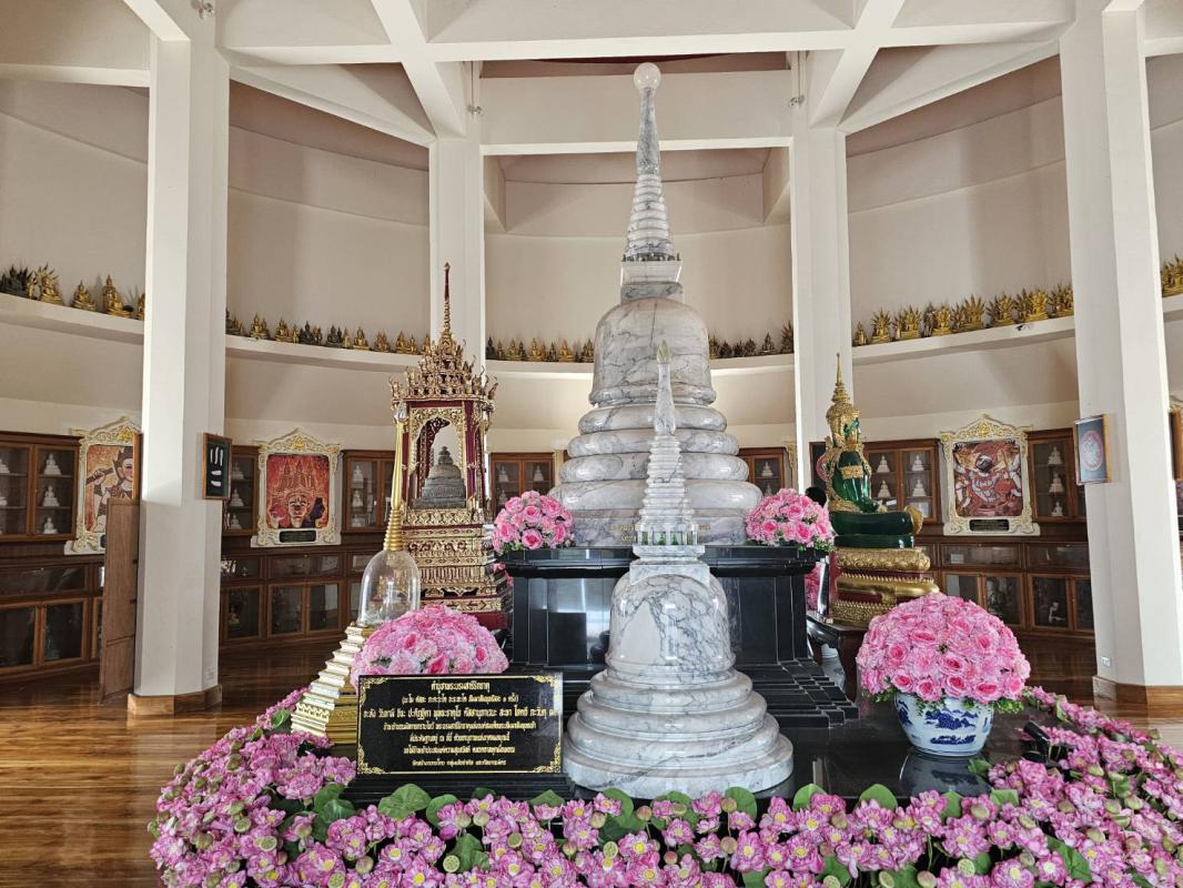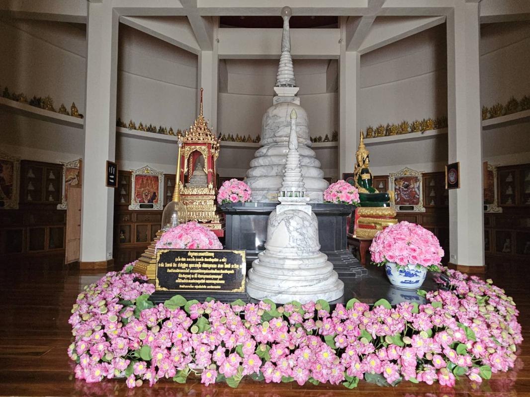 ที่บรรจุพระบรมสารีริกธาตุ ซึ่งสมเด็จพระสังฆราช ได้ประทานให้นำมาบรรจุในเจดีย์หยกและสลักสีขาวจากพม่า