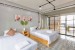 มี 4 ห้องนอน 5 ห้องน้ำ รองรับได้ถึง 17 ท่าน (พักสูงสุดได้ 20 ท่าน) ตัวบ้านหันหน้า