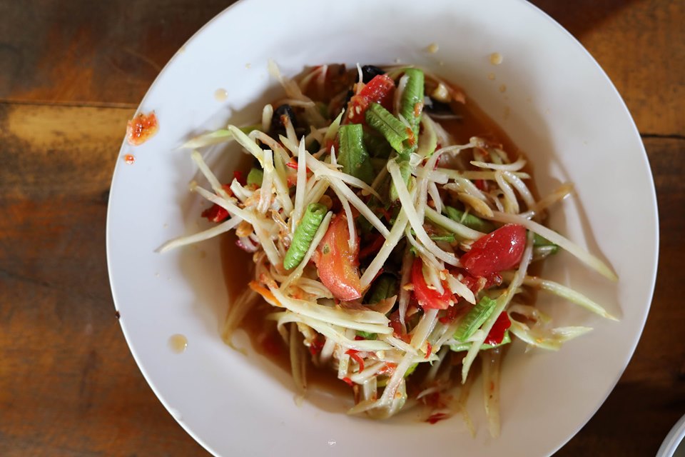 ส้มตำ ตามใจยายเหลา ถ้าวันไหนยุ่งๆ ยายเหลาจะไม่ตำ แม้ผมจะอยากกินมากมายเพียงใด ถ้าแกยุ่งๆ แกจะไม่ตำ ๕๕๕+ แต่วันนี้โชคดีได้กินส้มตำสูตรยายเหลาแล้ว รสชาติดีหวานนำนิดๆ นอกจากนนี้ที่ร้านยังมี เต้าหู้ทอด ที่น้ำจิ้มทำเอง ถั่วคั่วเองสดใหม่ และขนมหวานให้ได้กินกันอีกด้วย