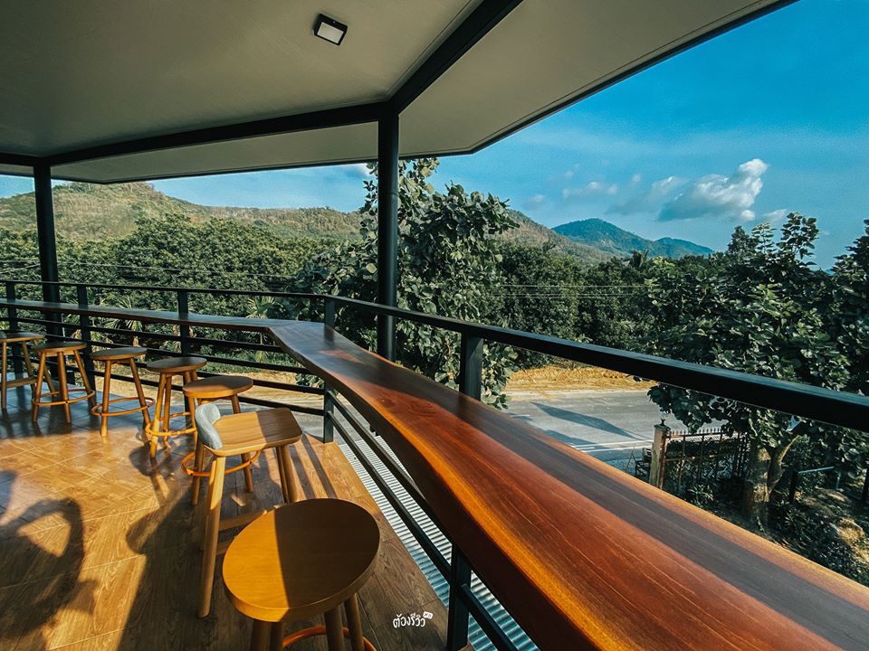 คาเฟ่สองชั้นมีระเบียงนั่งมองวิวทิวเขาและสวนผลไม้ รอบๆ มีการจัดสวนปลูกต้นไม้ต่างๆ ไว้มากมาย มีสะพานยื่นออกไปในน้ำให้ได้นั่งชิลล์ ตัวคาเฟ่สองชั้นจะมีชั้นบนมีระเบียงยื่นออกไปด้านนอก เพื่อชมวิวสวนผลไม้และทิวเขา ส่วนชั้นล่างในห้องดอกคามิลเลียจะมีพื้นที่ประชุมสัมมนาสำหรับกลุ่มเล็กๆ อีกด้วย กาแฟรสชาติโอเคเลยฮะ เจ้าของร้านเป็นกันเองมากทั้งคุณแม่และคุณลูก Homemade Chocolate Mousse หวานน้อย มีความหนืดและเข้มข้นดีครับ ร้านอยู่ทางไปบรุคไซด์ วัลเล่ย์ นาตาขวัญ อำเภอเมือง จังหวัดระยอง