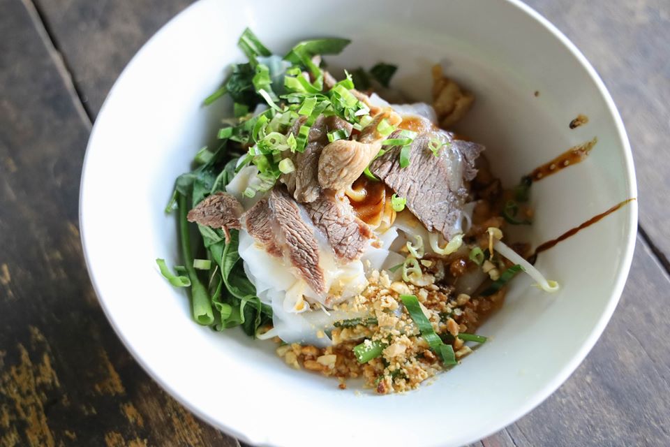 ซุปกลมกล่อมเคี่ยวพร้อมสมุนไพร ท็อปด้วยเนื้อหรือหมู คลุกเคล้าเส้นให้ผสานกับน้ำซุป ปรุงรสด้วยน้ำส้มพริกตำ เติมความหวานอีกนิดด้วยน้ำตาลอ้อย