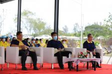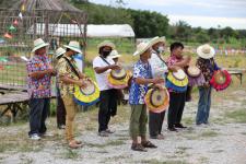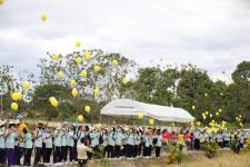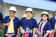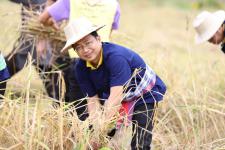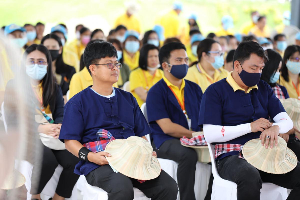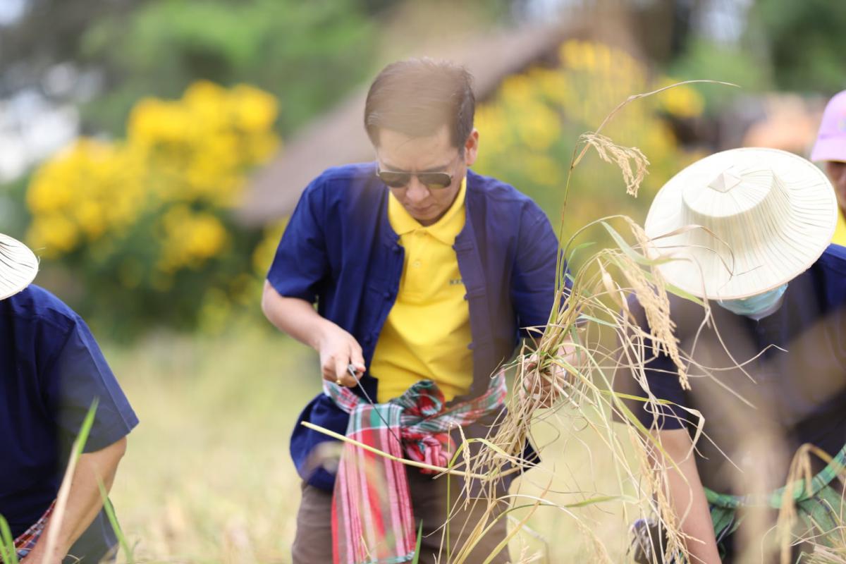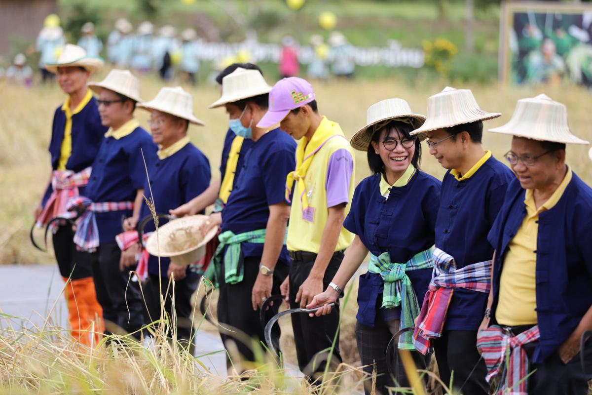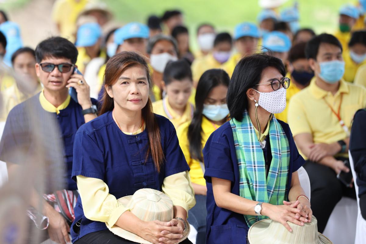 ภายในพิธี นายวุฒิศักดิ์ สิงหเดโช นายอำเภอปลวกแดง ได้เปิดกรวยถวายราชสักการะและร่วมปล่อยลูกโป่งเทิดพระเกียรติ เนื่องในโอกาสร่วมลงมือเกี่ยวข้าวในแปลงนาสาธิต ทั้งนี้ ข้าวที่ได้เก็บเกี่ยวเป็นสายพันธุ์ข้าวเจ้า ขาวดอกมะลิ 105 ที่มีลักษณะเด่นคือ เป็นข้าวเจ้านุ่มค่อนข้างเหนียว ไม่ไวต่อช่วงแสง มีเสถียรภาพการให้ผลผลิตดี ลำต้นแข็งแรง อายุการเก็บเกี่ยว 110 – 115 วัน จากการสอบถามผู้ที่มาร่วมงาน มีความปลื้มปิติและยินดีเป็นอย่างยิ่ง ที่ได้มาร่วมเป็นส่วนหนึ่งในงานสำคัญในครั้งนี้
