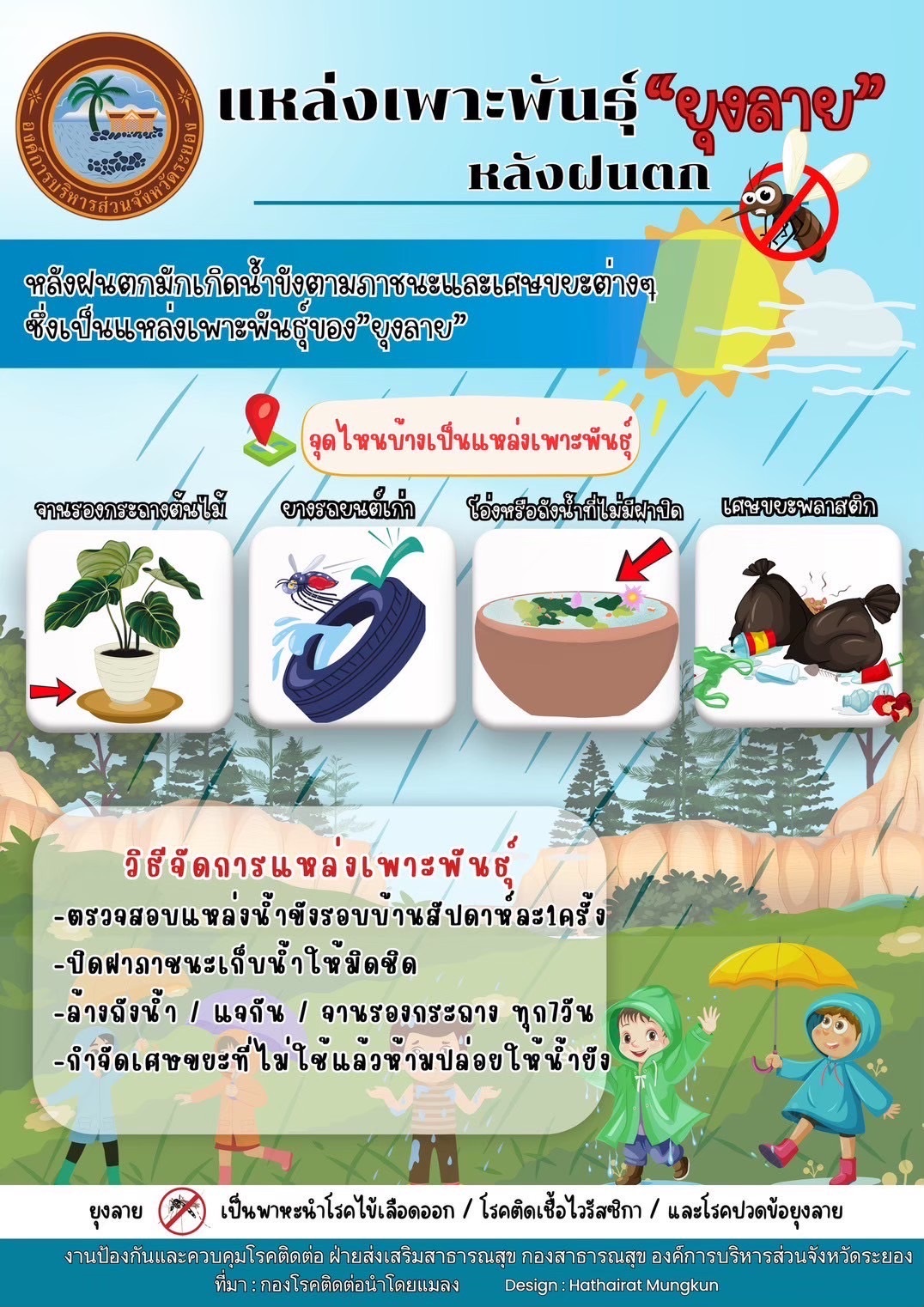 ด้วยองค์การบริหารส่วนจังหวัดระยอง อนุมัติให้กองสาธารณสุข จัดทำโครงการ อบจ.ระยอง องค์กรปลอดภัย ห่างไกลโรคติดต่อนำโดยยุงลาย โดยมีวัตถุประสงค์ เพื่อเป็นการเฝ้าระวัง ป้องกัน และควบคุมการแพร่ระบาดของโรคติดต่อนำโดยยุงลาย และส่งเสริมให้บุคลากรมีส่วนร่วมในการจัดสภาพแวดล้อมไม่ให้เอื้อต่อการเป็นแหล่งเพาะพันธุ์ลูกน้ำยุงลาย ซึ่งการดำเนินงานโครงการฯ รวมถึงกิจกรรมการประชาสัมพันธ์เกี่ยวกับโรคติดต่อนำโดยยุงลาย ผ่านสื่อประชาสัมพันธ์ รายละเอียดปรากฏตามเอกสารที่แนบมาพร้อมนี้
