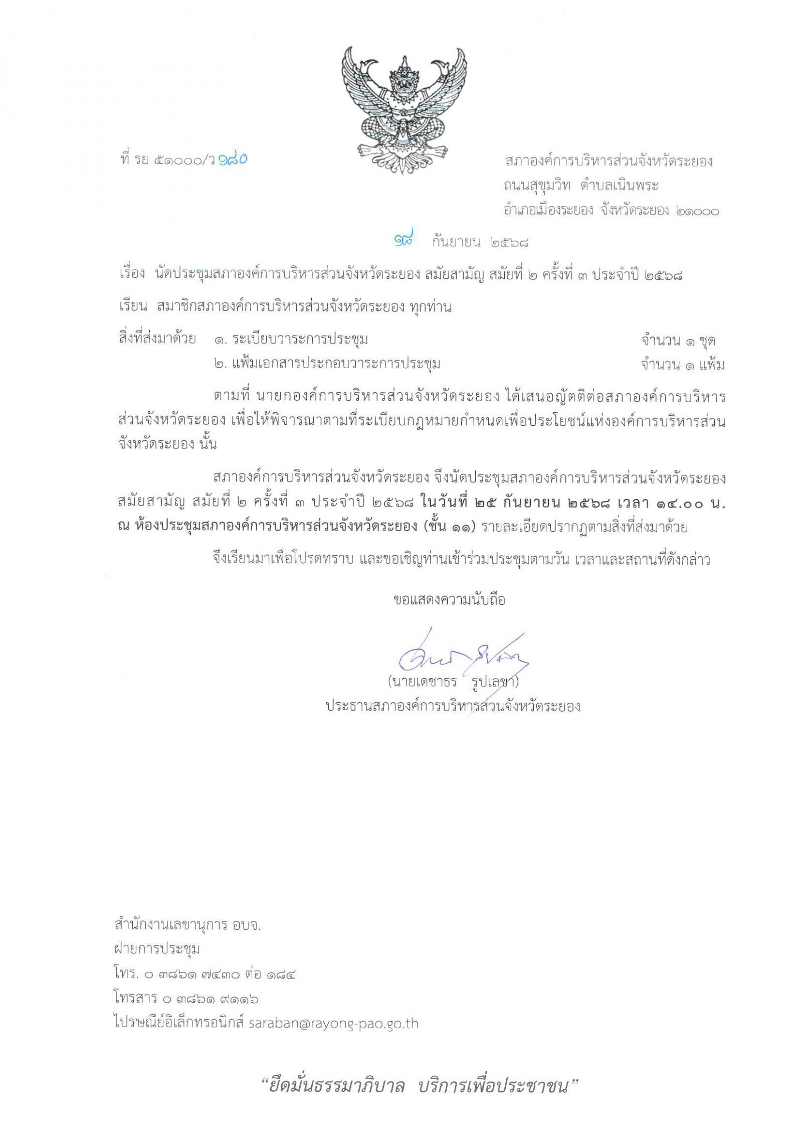 นัดประชุมสภาองค์การบริหารส่วนจังหวัดระยอง สมัยสามัญ สมัยที่ 2 ครั้งที่ 3 ประจำปี 2568.
