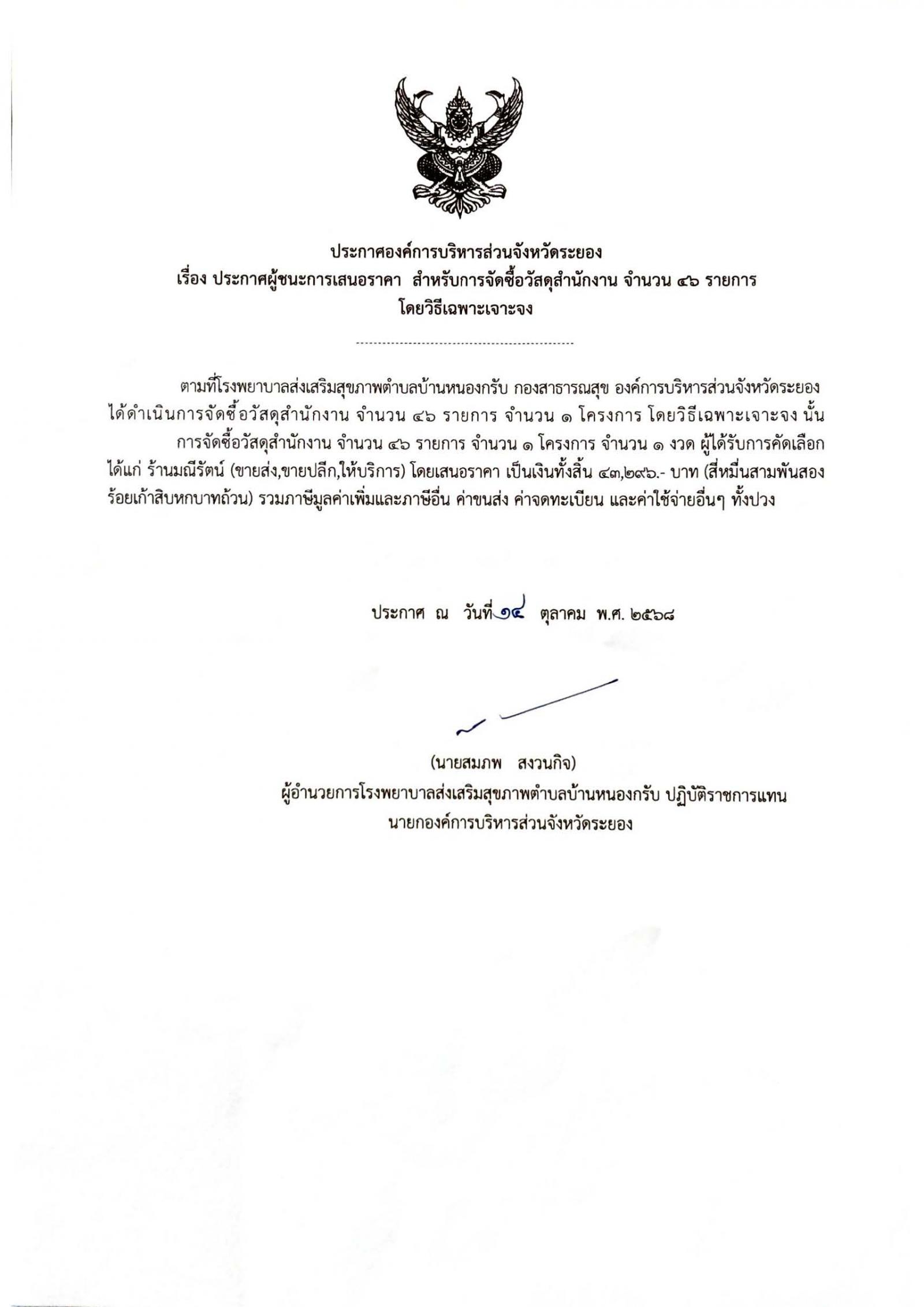 ประกาศผู้ชนะการเสนอราคา สำหรับการจัดซื้อวัสดุสำนักงาน จำนวน 46 รายการ โดยวิธีเฉพาะเจาะจง