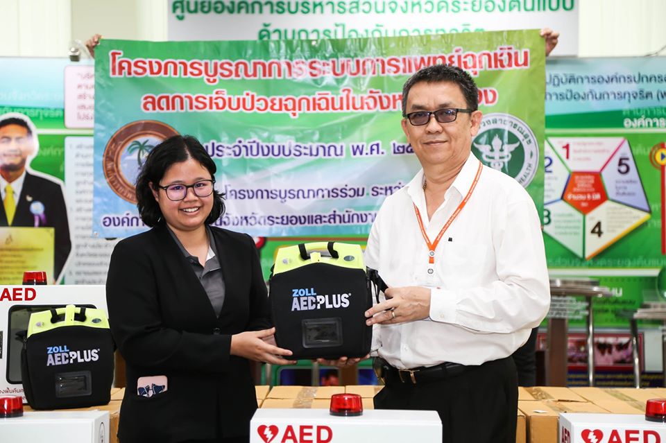 อบจ.ระยอง มอบเครื่องกระตุกหัวใจชนิดอัตโนมัติ (AED)ให้กับสำนักงานสาธารณสุขจังหวัดระยอง