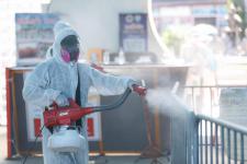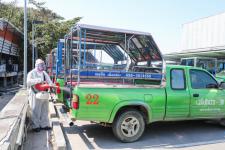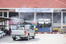 องค์การบริหารส่วนจังหวัดระยอง นำเจ้าหน้าที่ทำการฉีดพ่นน้ำยาฆ่าเชื้อ บริเวณสถานที่ที่มีความเสี่ยงต่อเชื้อไวรัส Covid-19