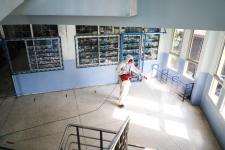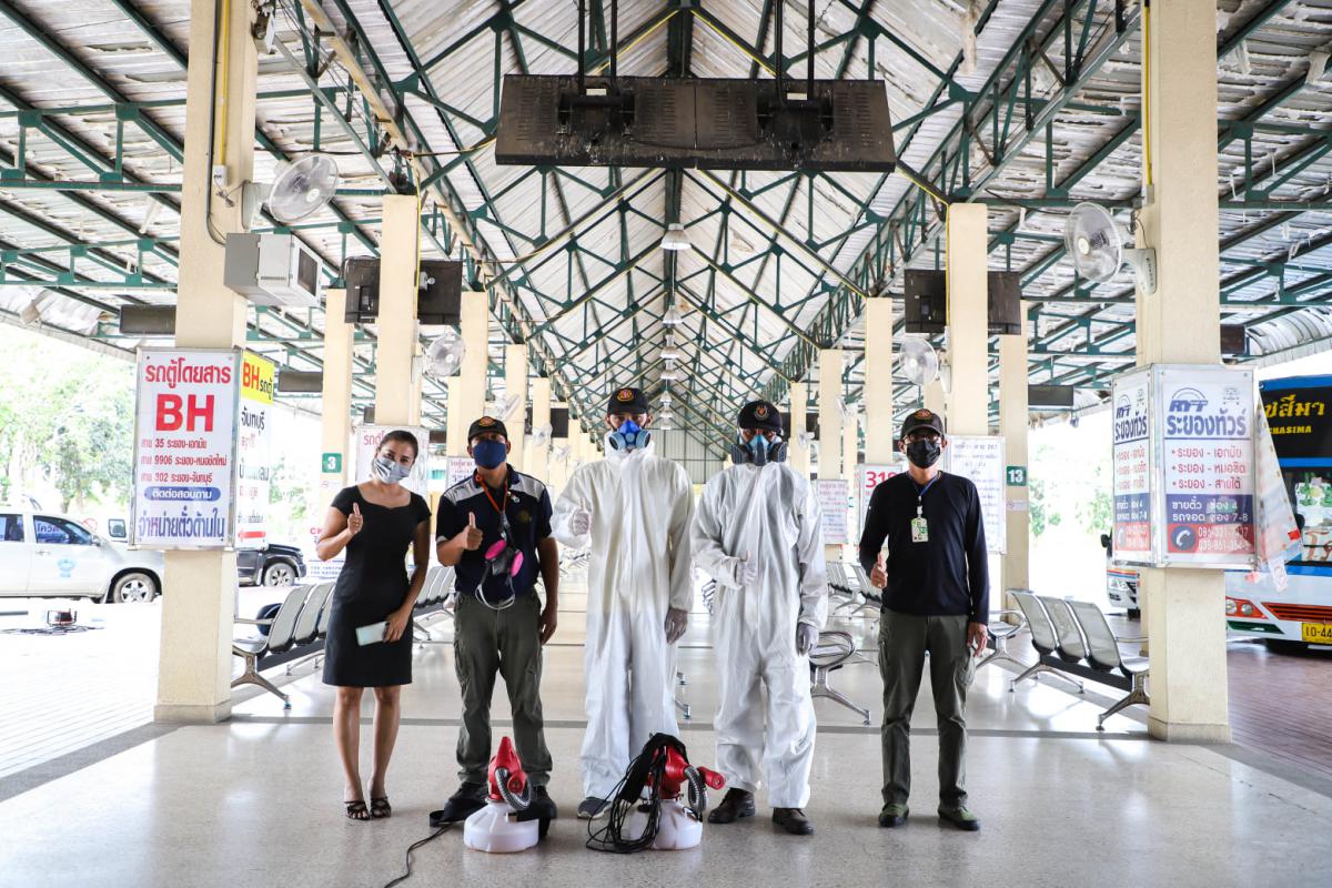 อบจ.ระยองนำเจ้าหน้าที่ทำการฉีดพ่นน้ำยาฆ่าเชื้อ บริเวณสถานที่ที่มีความเสี่ยงต่อเชื้อไวรัส Covid-19