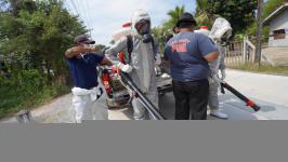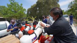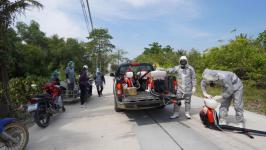 ฉีดพ่นน้ำยาฆ่าเชื้อไวรัส Covid-19 ณ บริเวณ ตลาดสวนมุก ต.เนินพระ บริเวณชุมชน อบต.นาตาขวัญ ชุมชนเขาวังม่าน ต.นาตาขวัญ
