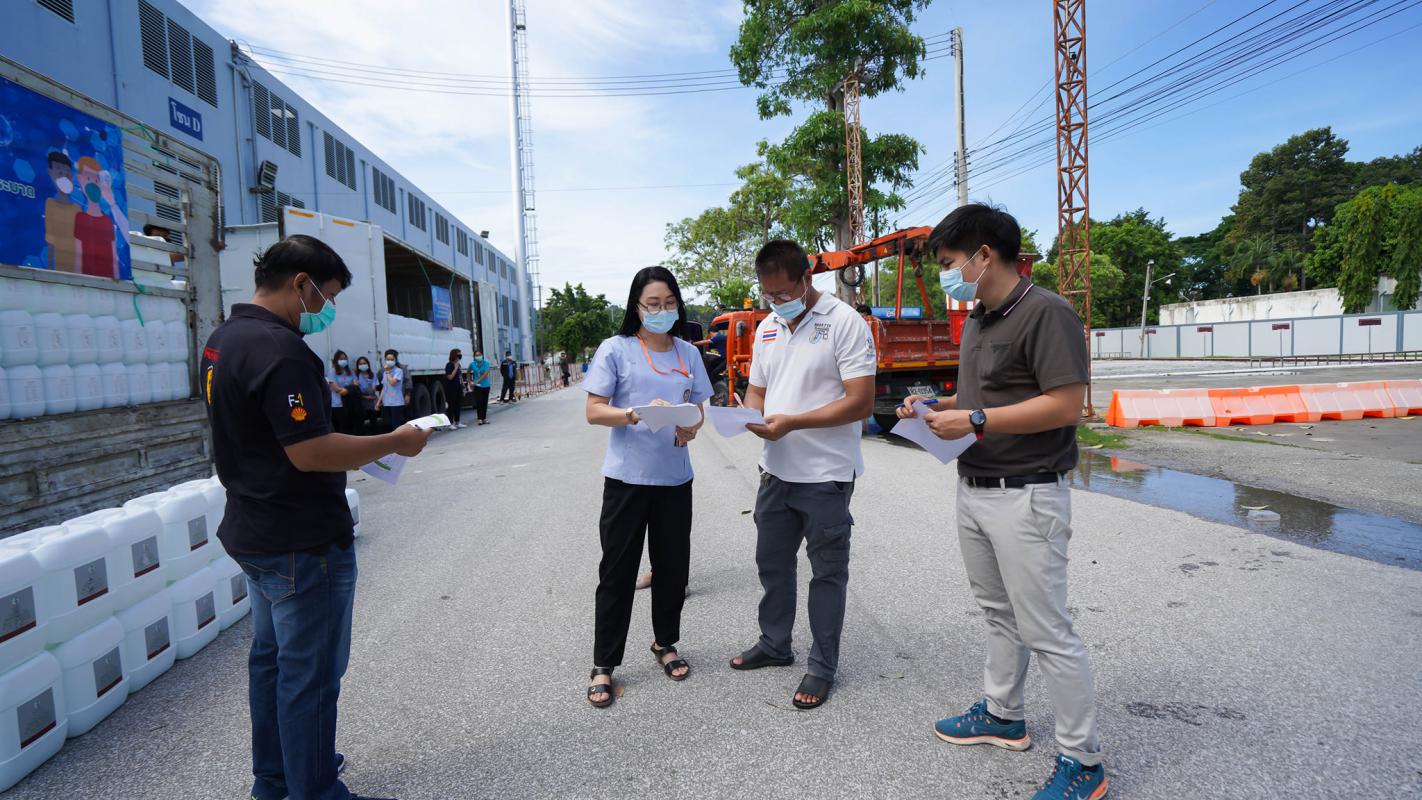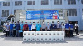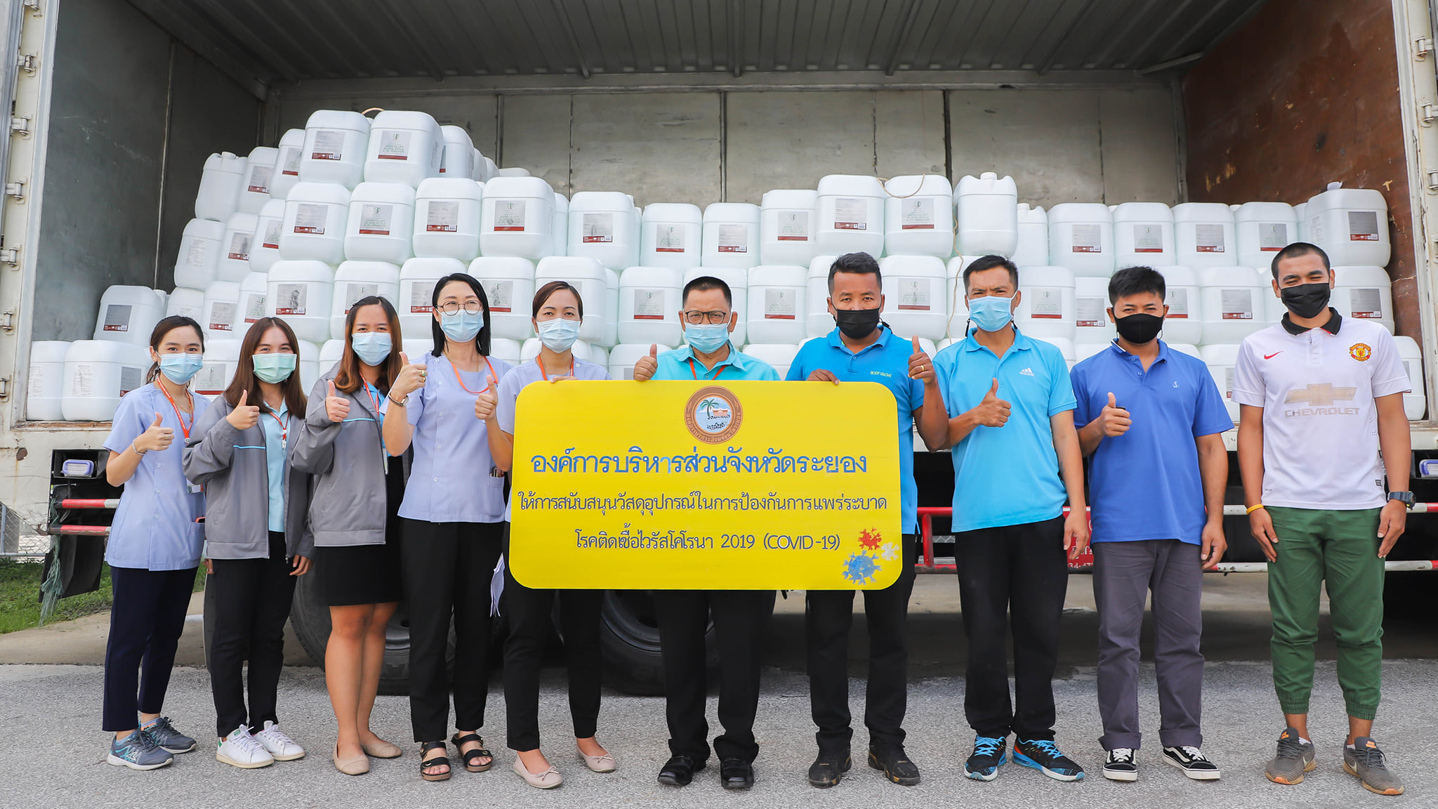 อบจ.ระยอง สนับสนุนน้ำยาฆ่าเชื้อและเจลแอลกอฮอล์ ให้ อปท.และมูลนิธิกู้ภัยในจังหวัดระยอง