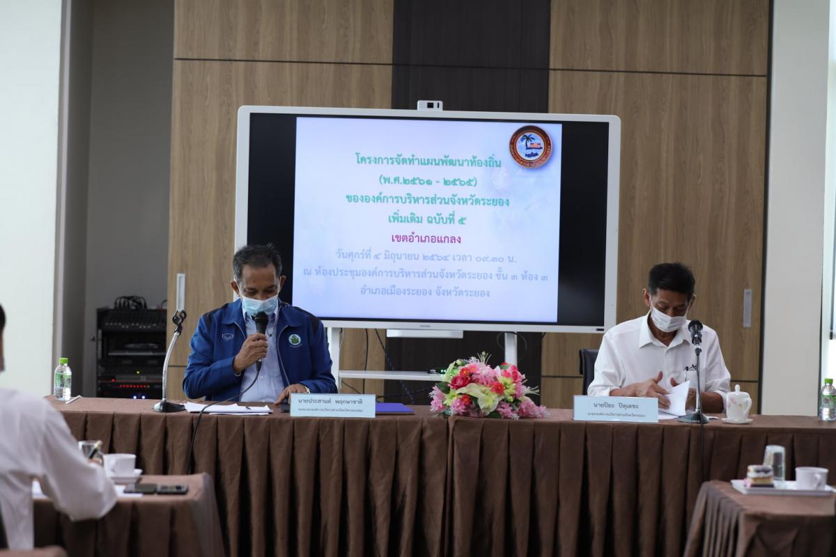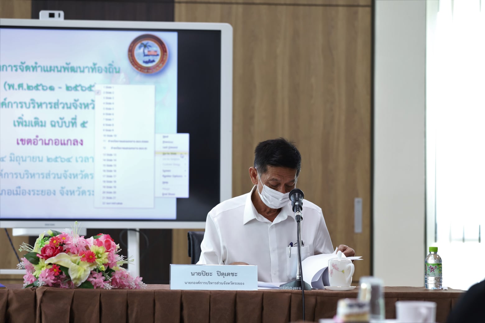วันที่ 4 มิถุนายน 2564 เวลา 09.30 น. กองยุทธศาสตร์และงบประมาณองค์การบริหารส่วนจังหวัดระยอง ดำเนินการจัดทำโครงการแผนพัฒนาท้องถิ่นขององค์การบริหารส่วนจังหวัดระยอง (พ.ศ. 2561 - 2565) (เพิ่มเติม ฉบับที่ 5) ครั้งที่ 3/2564 (อำเภอแกลง) โดยมี นายปิยะ ปิตุเตชะ นายกองค์การบริหารส่วนจังหวัดระยอง นายประสานต์ พฤกษาชาติ รองนายกองค์การบริหารส่วนจังหวัดระยอง (2) นายอรุณ วิชกิจ ผู้เชี่ยวพิเศษด้านการวางแผนและวิเคราะห์นโยบาย เข้าร่วมพิธีเปิดโครงการ พร้อมด้วย สมาชิกสภาองค์การบริหารส่วนจังหวัดระยอง หัวหน้าส่วนราชการ ผู้อำนวยการกอง องค์กรปกครองส่วนท้องถิ่นในเขตพื้นที่อำเภอแกลง เข้าร่วมงานอย่างพร้อมเพรียง ณ ห้องประชุม 3 ชั้น 3 อบจ.ระยอง