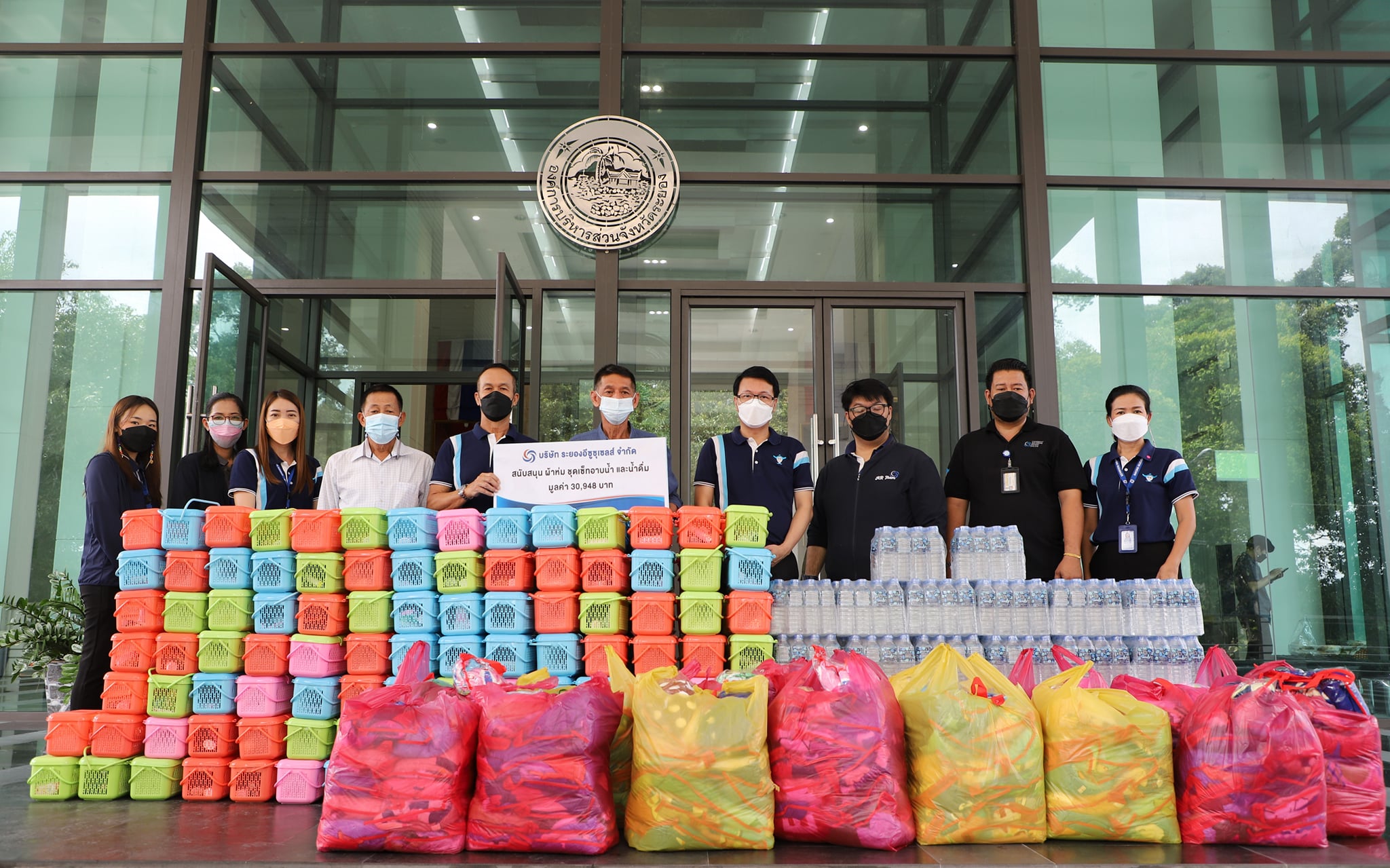 วันที่ 19 สิงหาคม 2564 เวลา 10.00 น. บริษัท ระยองอีซูซุเซลส์ จำกัด สนับสนุน ผ้าห่ม ชุดเซ็ทอาบน้ำ และน้ำดื่ม จำนวน 200 ชุด มูลค่า 30,948 บาท โดยมีนายปิยะ ปิตุเตชะ นายกองค์การบริหารส่วนจังหวัดระยอง และนายอรุณ วิชกิจ ผู้เชี่ยวชาญพิเศษด้านการวางแผนและวิเคราะห์นโยบาย เป็นตัวแทนในการรับมอบดังกล่าว ซี่งจะส่งมอบให้กับผู้ติดเชื้อที่เข้ารับการรักษาตัวที่โรงพยาบาลสนามและบุคลากรทางการแพทย์