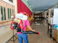 ฉีดพ่นน้ำยาฆ่าเชื้อโดยฝ่ายป้องกันและบรรเทาสารณภัย สำนักปลัดองค์การบริหารส่วนจังหวัด