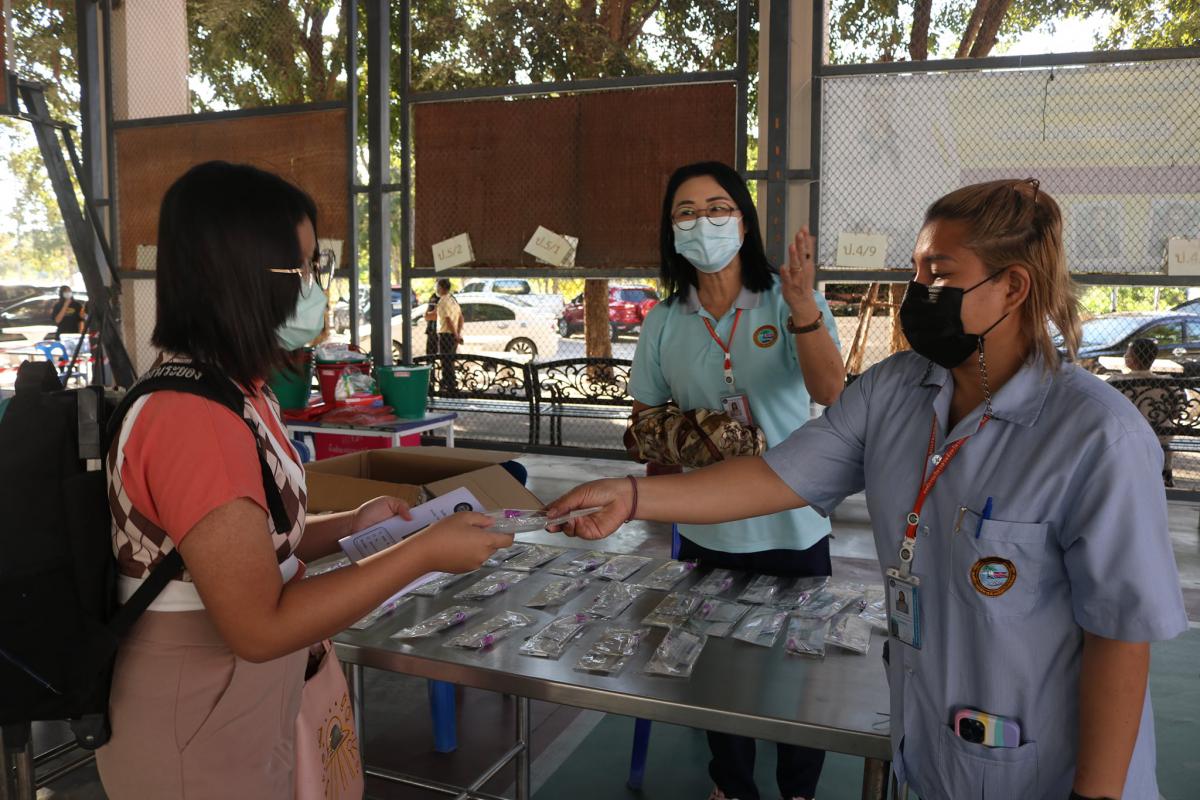 ซึ่งกองสาธารณสุข องค์การบริหารส่วนจังหวัดระยอง พร้อมทั้งทีมพยาบาลและเจ้าหน้าที่ที่เกี่ยวข้อง ร่วมกันคัดกรองโดยใช้ชุดตรวจ Rapid Antigen Test เพื่อตรวจหาเชื้อไวรัสโควิด- 19 ให้นักเรียน สำหรับเด็กนักเรียนที่เปิดการเรียนการสอนแบบปกติ ในระดับชั้นประถมศึกษาปีที่ 6 เนื่องจากเด็กนักเรียนในระดับชั้นดังกล่าวต้องเตรียมตัวเพื่อจะจบการศึกษาและต้องไปศึกษาต่อในระดับชั้นอื่นๆต่อไป จำเป็นต้องได้รับการเรียนการสอนที่เข้มงวด ส่วนวิทยาลัยเทคโนโลยีและอาชีวศึกษาตากสินระยอง เปิดการเรียนการสอนในระดับชั้น ปวช.และ ปวส. เนื่องจากเด็กนักเรียนในระดับดังกล่าวได้รับการฉีดวัคซีนครบถ้วนแล้ว