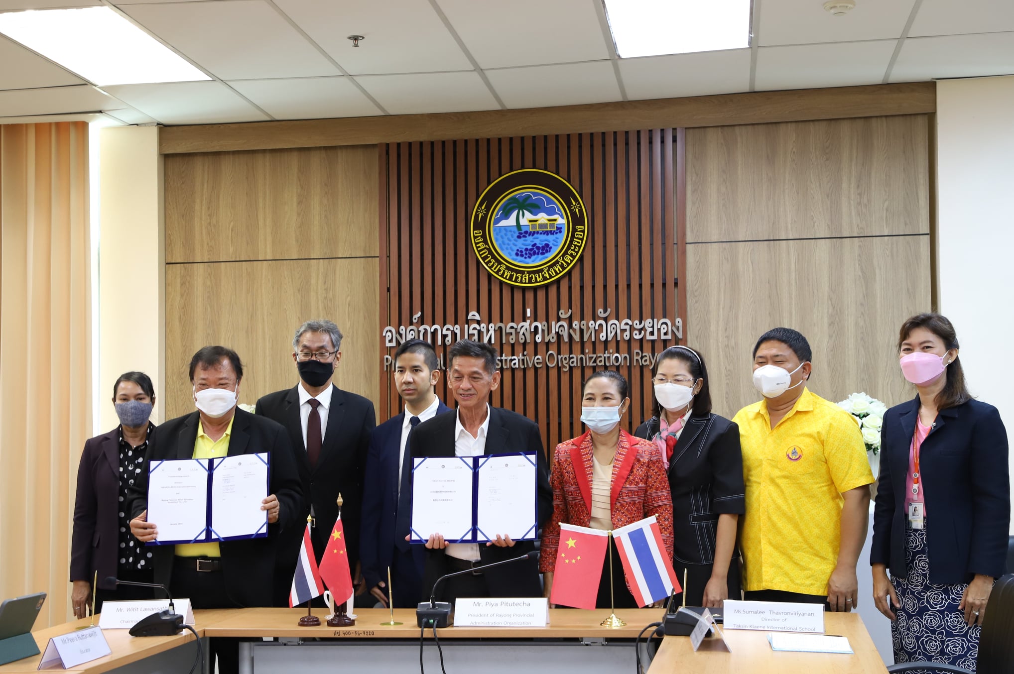วันที่ 18 มกราคม 2564 เวลา 10.00 น. ณ ห้องประชุม 2 ชั้น 3 อบจ.ระยอง นายปิยะ ปิตุเตชะ นายกองค์การบริหารส่วนจังหวัดระยอง พร้อมด้วย นายเจษฎา สุนทรเวชพงษ์ นางกนกวรรณ เบญจาทิกุล สมาชิกสภาองค์การบริหารส่วนจังหวัดระยอง นางสาวราตรี คุ้มญาติ ผู้อำนวยการกองการศึกษา ศาสนาและวัฒนธรรม นางสุมาลี ถาวรวิริยะนันท์ ผู้อำนวยการโรงเรียนนานาชาติตากสินแกลง นายวิทิต ลาวัณย์เสถียร ประธานคณะกรรมการสถานศึกษาฯ ร่วมพิธีลงนามบันทึกข้อตกลง (MOU) ความร่วมมือว่าด้วยการส่งเสริม และยกระดับการศึกษาสถานศึกษา ระหว่าง Beijing Financial Street Education Investment Co., LTD และโรงเรียนนานาชาติตากสินแกลง