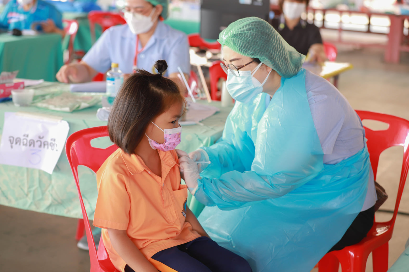 วันที่ 8 เมษายน 2565 กองสาธารณสุข อบจ.ระยอง ร่วมกับ โรงพยาบาลบ้านค่าย ให้บริการฉีดวัคซีนแก่เด็กนักเรียนระดับชั้นอนุบาลและระดับชั้นประถมโรงเรียนอนุบาลนานาชาติตากสินบ้านค่าย (วัดหวายกรอง) ในช่วงอายุ 5-11 ปี ซึ่งเป็นวัคซีน Pfizer เพื่อป้องกันเชื้อไวรัสโควิด -19 เข็มที่ 1 ณ หอประชุมโดม โรงเรียนอนุบาลนานาชาติตากสินบ้านค่าย (วัดหวายกรอง)