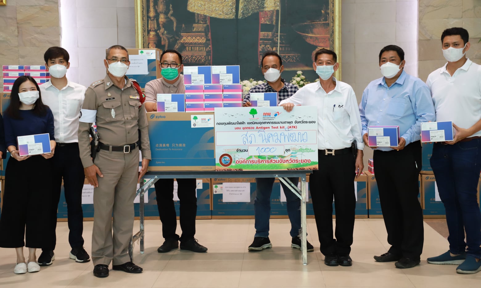 องค์การบริหารส่วนจังหวัดระยองร่วมกับกองทุนพัฒนาไฟฟ้าเขตนิคมอุตสาหกรรม มอบชุดตรวจ ATK ให้กับหน่วยงานราชการในพื้นที่จังหวัดระยอง