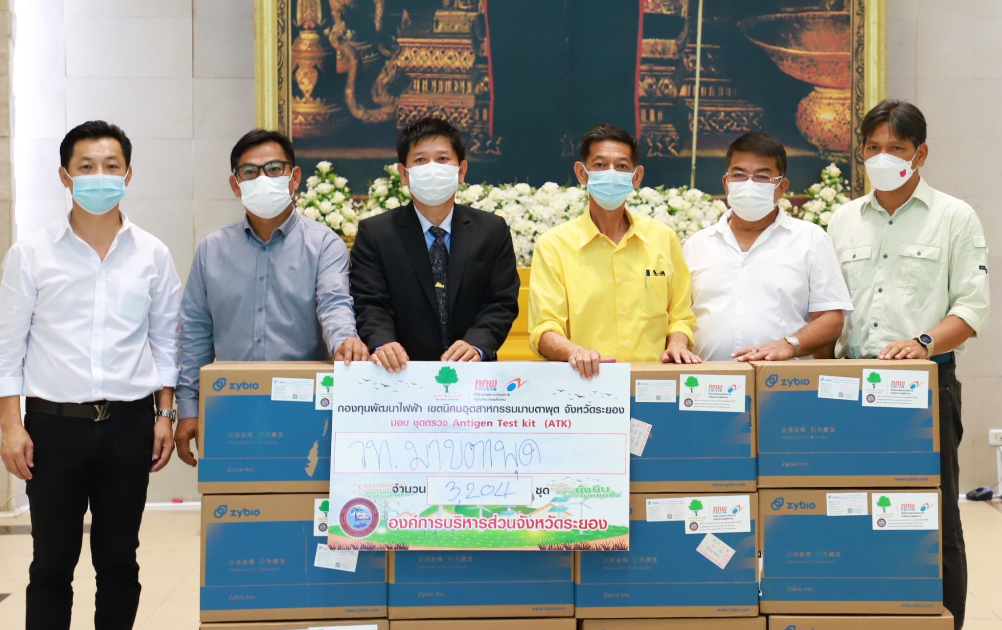 องค์การบริหารส่วนจังหวัดระยองร่วมกับกองทุนพัฒนาไฟฟ้าเขตนิคมอุตสาหกรรม มอบชุดตรวจ ATK ให้กับสถานศึกษาในพื้นที่จังหวัดระยอง