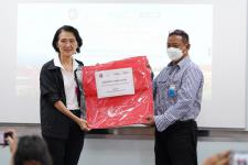 อบจ.ระยองร่วมส่งมอบถุงห่อทุเรียนและเข้าร่วมการบรรยายในกิจกรรมการขยายผลพื้นที่สาธิตเทคโนโลยีเพื่อการทดสอบประสิทธิภาพนวัตกรรมถุงห่อทุเรียน Magik Growth
