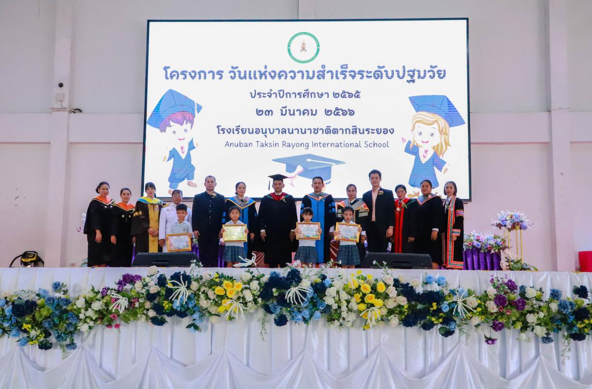 วันที่ 23 มีนาคม 2566 เวลา 09.00 น. นายประสานต์ พฤกษาชาติ รองนายกองค์การบริหารส่วนจังหวัดระยอง (2) เป็นประธานในพิธี พร้อมด้วย นายสนิท โคตะระ ผู้อำนวยการสถานศึกษา โรงเรียนอนุบาลนานาชาติตากสินระยอง ผู้เชี่ยวชาญ คณะกรรมการสถานศึกษา คณะกรรมการเครือข่ายผู้ปกครอง คณะครู และผู้ที่เกี่ยวข้องเข้าร่วมโครงการวันแห่งความสำเร็จระดับปฐมวัย ประจำปีการศึกษา 2565 โดยพร้อมเพรียงกัน