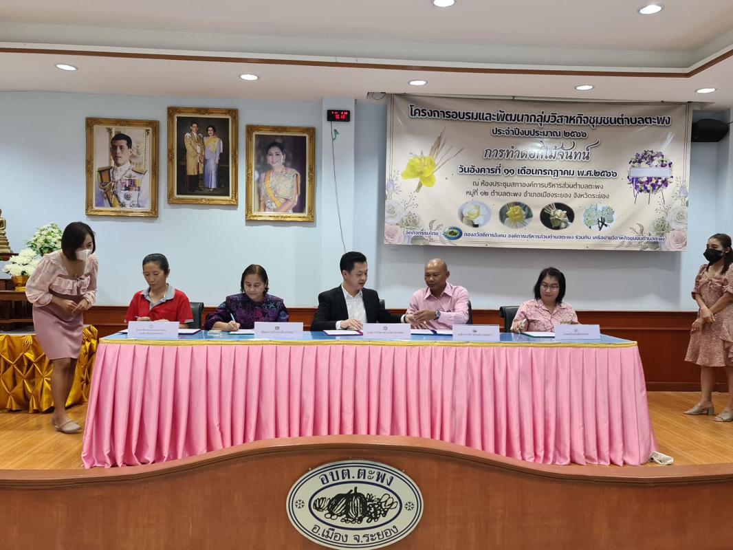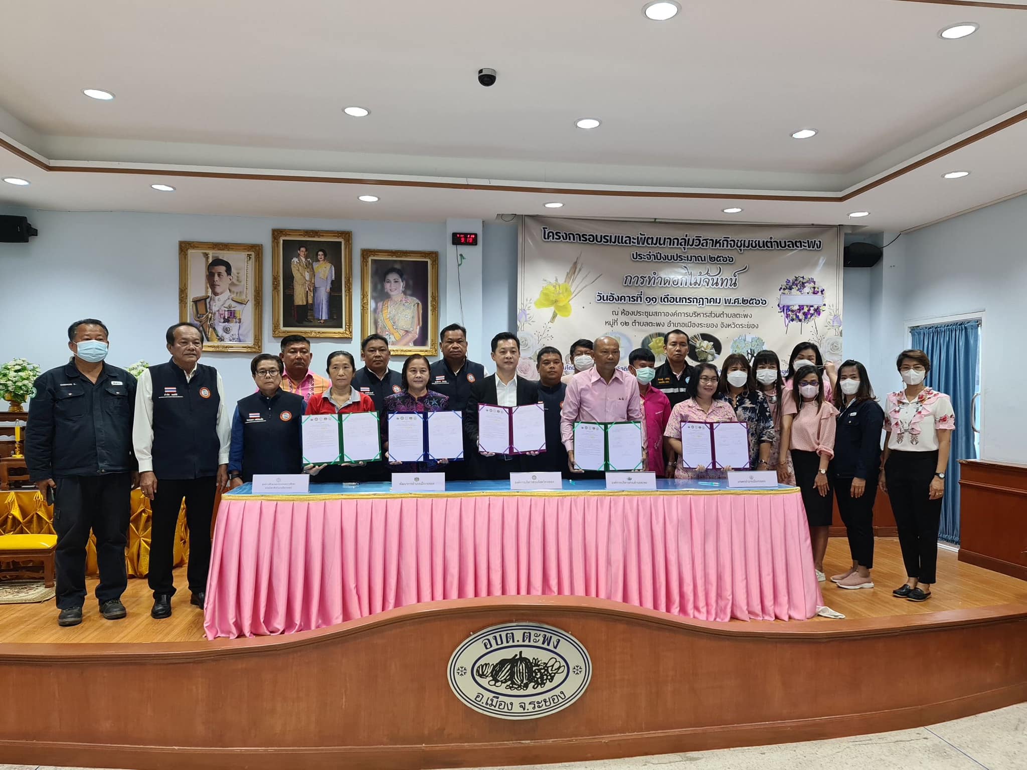 อบจ.ระยองร่วมพิธีเปิดโครงการ พร้อมร่วมลงนามบันทึกข้อตกลง (MOU) เพื่อสนับสนุนการพัฒนารัฐวิสาหกิจชุมชนในพื้นที่ตำบลตะพง