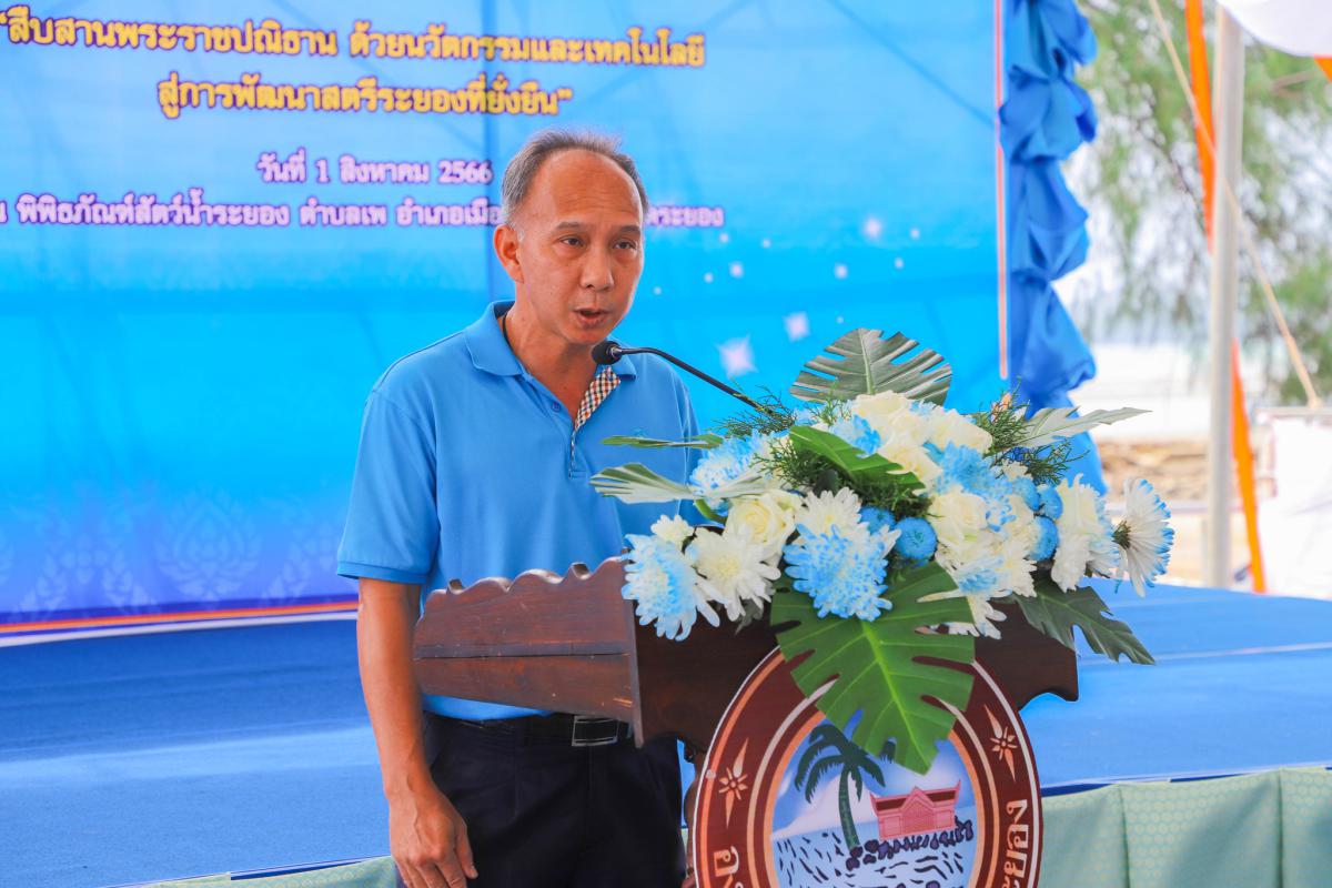 โดยมีนายธนัช ศรีคุ้ม ผู้อำนวยการศูนย์วิจัยและพัฒนาประมงทะเลระยอง เป็นผู้กล่าวต้อนรับผู้เข้าร่วมโครงการ นางกนกวรรณ เบญจาทิกุล ประธานกรรมการเยาวชน สตรีและ ผู้สูงอายุ สังคมสงเคราะห์และสวัสดิการ ประจําสภาองค์การบริหารส่วนจังหวัดระยอง เป็นผู้กล่าวรายงานวัตถุประสงค์ของโครงการ และนางชนินันท์ วงศ์ไตรรัตน์ นายกเหล่ากาชาดจังหวัดระยอง เป็นผู้อ่านกระแสพระราชดำรัชสมเด็จพระนางเจ้าสิริกิติ์ พระบรมราชินีนาถ พระบรมราชชนนีพันปีหลวง เนื่องในวันสตรีไทย พร้อมด้วย สมาชิกสภาองค์การบริหารส่วนจังหวัดระยอง กลุ่มสตรีแต่ละอำเภอในจังหวัดระยอง และผู้ที่เกี่ยวข้องร่วมกิจกรรมอย่างพร้อมเพรียง ณ พิพิธภัณฑ์สัตว์น้ำ ต.เพ อ.เมือง จ.ระยอง