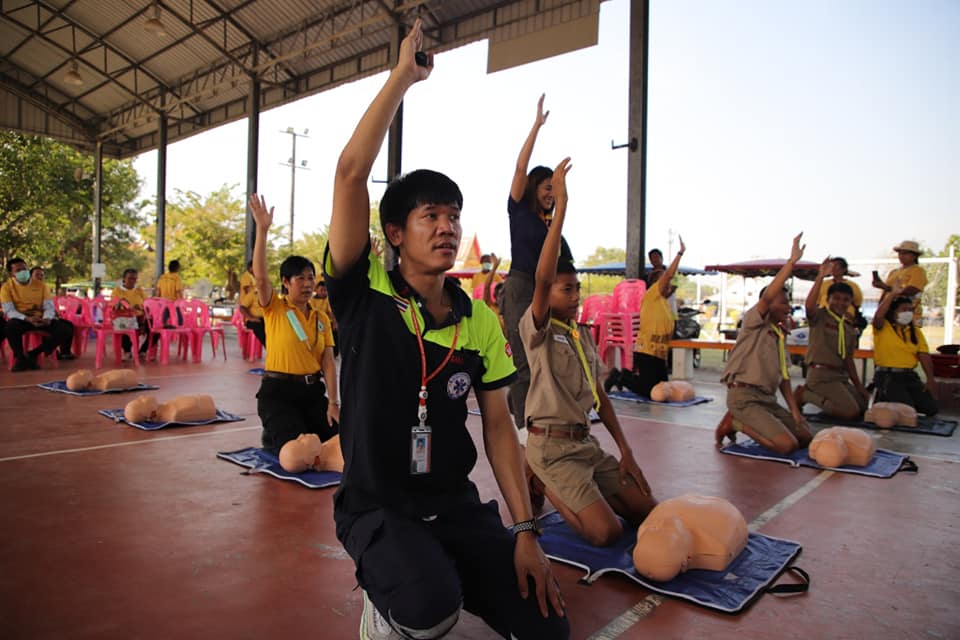 "ศูนย์ 1669 อบจ.ระยอง สาธิตการกู้ชีพให้แก่แกนนำสุขภาพตำบลเพ"
