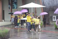 ยินดีต้อนรับ องค์การบริหารส่วนตำบลเขาชะเมา จังหวัดระยอง นำผู้สูงอายุในตำบลของตนเองมายังเมืองพระมหาชนก เจ้าหน้าที่ต้อนรับตั้งแต่ทุกท่านลงจากรถ เนื่องจากวันนี้สภาพอากาศฝนตก เจ้าหน้าที่ต้องดูแลผู้สูงอายุ และทุกท่านที่มาเยือนเป็นพิเศษ เจ้าหน้าที่ทุกท่านมีน้ำใจนำร่มไปรับไม่กังวลถึงความเปียก เพราะทำด้วยความตั้งใจ เต็มใจดูแลทุกท่านทุกฤดูกาล นับว่าเป็นความดี และเห็นความสำคัญของผู้มาเยือน เมืองพระมหาชนก ถัดมาทุกท่านจะได้เข้าไปยังอาคารอบรมและการเรียนรู้ อาคารปูทะเลย์มหาวิชชาลัย ต้อนรับโดยพิธีกรเสียงใส และเจ้าหน้าที่ทุกท่าน ให้การต้อนรับ ทุกท่านจะได้ทำกิจกรรมสันทนาการ กิจกรรมที่ให้ความสามัคคี ความบันเทิง และชมคลิปวิดีโอ แนะนำเมืองพระมหาชนก ซึ่งเป็นส่วนหนึ่งขององค์การบริหารส่วนจังหวัดระยอง ร่วมร้องเพลงสรรเสริญพระบารมี หลังจากจบกิจกรรมที่อาคารอบรมและการเรียนรู้ ทุกท่านจะได้นั่งรถรางชมวิวบรรยากาศ และ เข้าชมอาคารพระมหาชนก ที่รวบรวมจิตวิญญาณน้ำพระทัยของในหลวงรัชกาลที่ ๙ ก่อนกลับร่วมรับประทานอาหารมื้อกลางวันที่อาคารมิถิลา ซึ่งด้านข้างสามารถชมวิวสวนดอกไม้สามฤดู ๓ ฤดู เรียกได้ว่าทุกที่ของเมืองพระมหาชนกมีความสวยงามเป็นอย่างยิ่ง ไว้มีโอกาสกลับมายังเมืองพระมหาชนกอีกครั้ง ณ อาคารพระมหาชนก อ่างเก็บน้ำดอกกราย อำเภอปลวกแดง จังหวัดระยอง