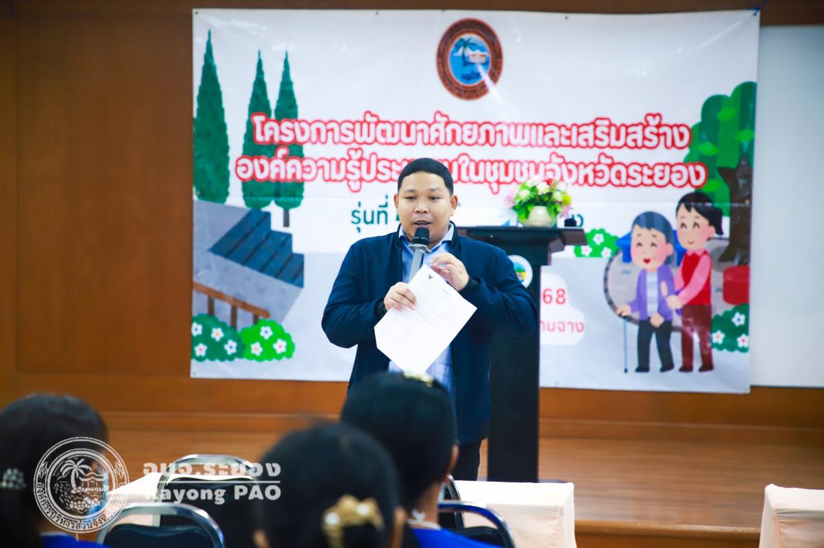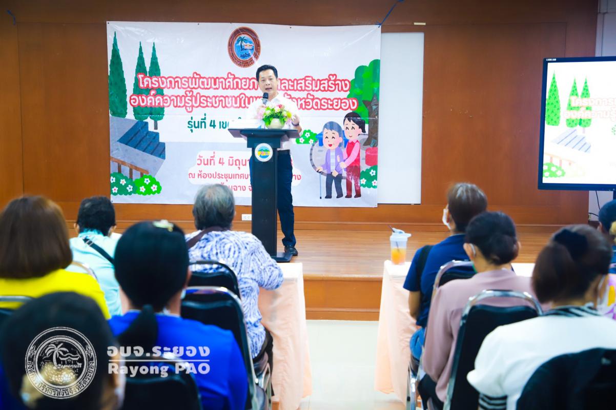 วันที่ 4 มิถุนายน 2568 เวลา 09.00 น. นายกิตติ เกียรติ์มนตรี รองนายกองค์การบริหารส่วนจังหวัดระยอง เป็นประธานกล่าวเปิด “โครงการพัฒนาศักยภาพและเสริมสร้างองค์ความรู้ประชาชนในชุมชนจังหวัดระยอง” รุ่นที่ 4 ณ ห้องประชุมเทศบาลเมืองบ้านฉาง พร้อมด้วยแพทย์หญิงสมบัติ ชุติมานุกูล เลขานุการนายกฯ ให้เกียรติร่วมเปิดโครงการฯ โดยมีนายสุริยะ ศิริวัฒน์ผอ..กองสาธารณสุข เป็นผู้กล่าวรายงาน
