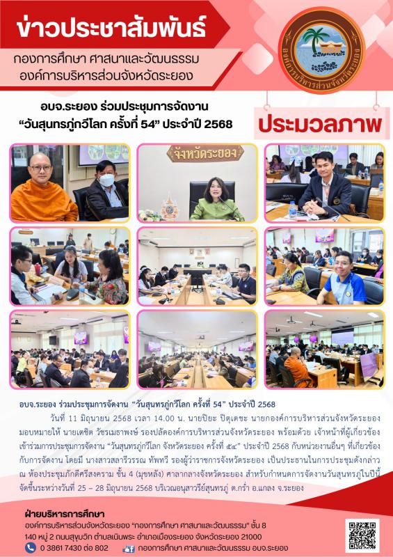 อบจ.ระยอง ร่วมประชุมการจัดงาน “วันสุนทรภู่กวีโลก ครั้งที่ 54” ประจำปี 2568