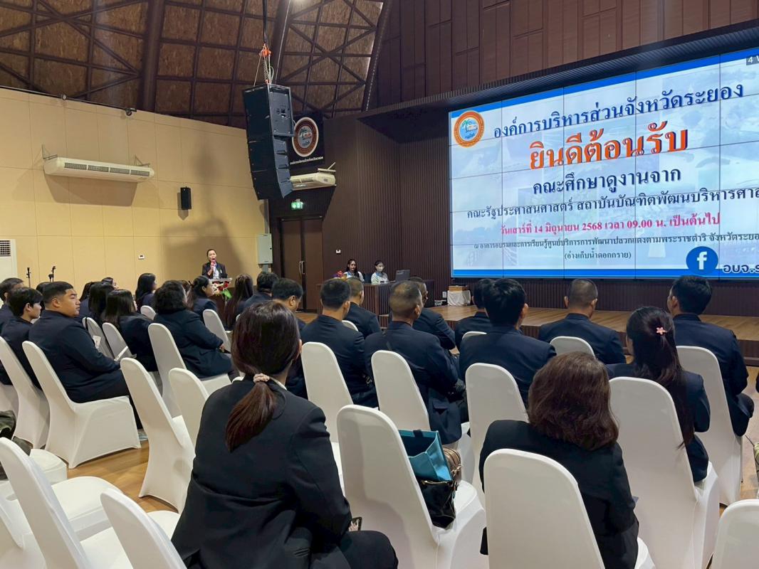 อบจ.ระยองต้อนรับคณะศึกษาดูงานจาก คณะรัฐประศาสนศาสตร์ สถาบันบัณฑิตพัฒนาบริหารศาสตร์ ในหัวข้อ ‘การบริหารจัดการเมืองระยองสู่เมืองแห่งอนาคต’