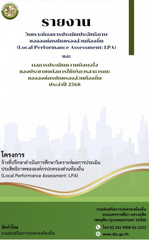 รายงานวิเคราะห์ผลการประเมินประสิทธิภาพขององค์กรปกครองส่วนท้องถิ่น (Local Performance Assessment : LPA) และผลการประเมินความพึงพอใจของประชาชนต่อการใช้บริการสาธารณะขององค์กรปกครองส่วนท้องถิ่น ประจำปี ๒๕๖๘