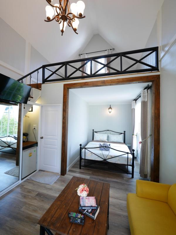 ตู้เย็น กาน้ำร้อน และยังมีบริการอาหารเช้าแบบบุฟเฟต์ให้กินกันแบบจุกๆ มีลานระเบียงสวยๆ ไว้ให้เก็บภาพ