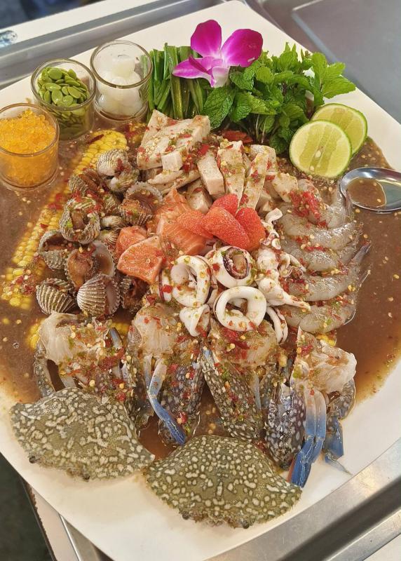 ยำจานใหญ่แซ่บในย่านทับมา มีห้องแอร์ และห้องโล่งพัดลมเย็นสบาย