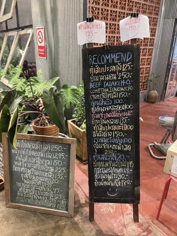 อาหารทางร้านเป็นสไตล์พื้นบ้านอาหารไทยเหนือและอีสาน มีเมนูพิเศษที่ได้คัดสรร